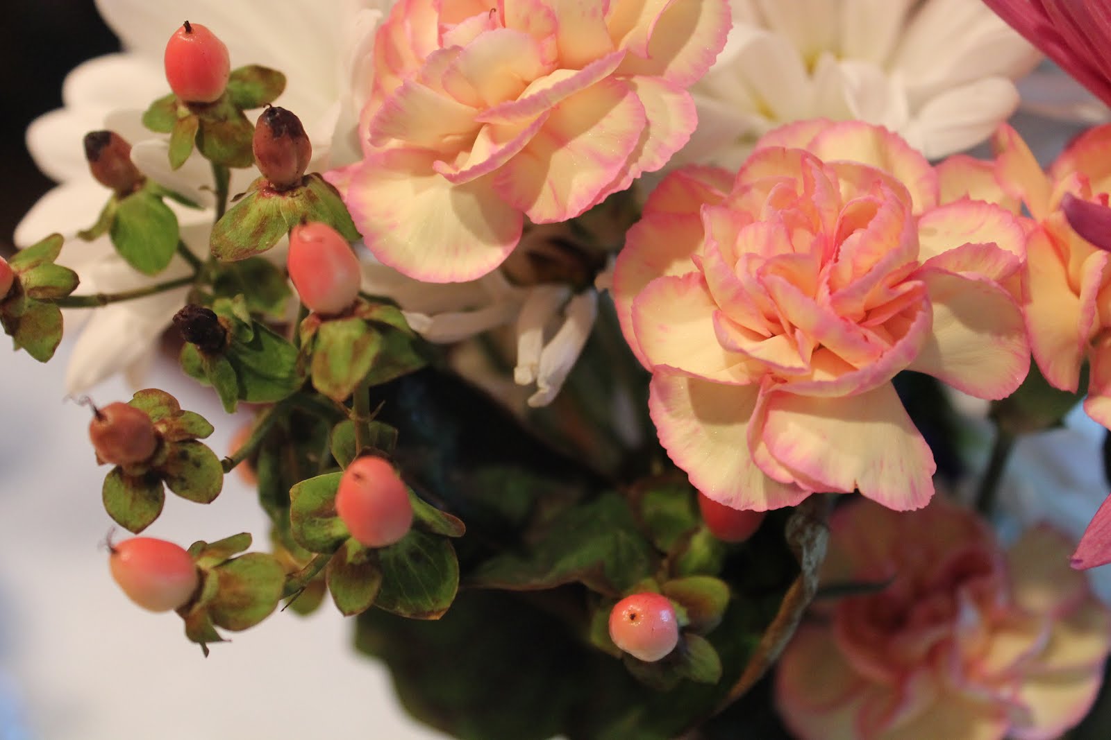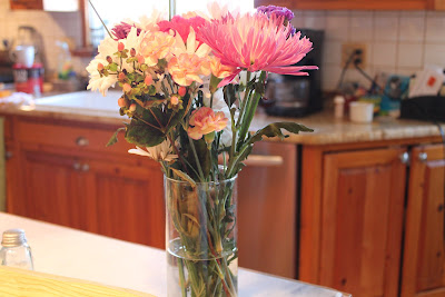 Hi everyone. It's been a few typical winter days here in my world. The sun is not cooperating today and I have nowhere to go so I thought I would sit down and do a post. These are flowers that are still going strong since Valentine's Day. They were given to Abby from her boyfriend, Tom. She also received chocolates, which I helped her devour. I received a chocolate rose from The Husband which was hollow...don't you hate that?