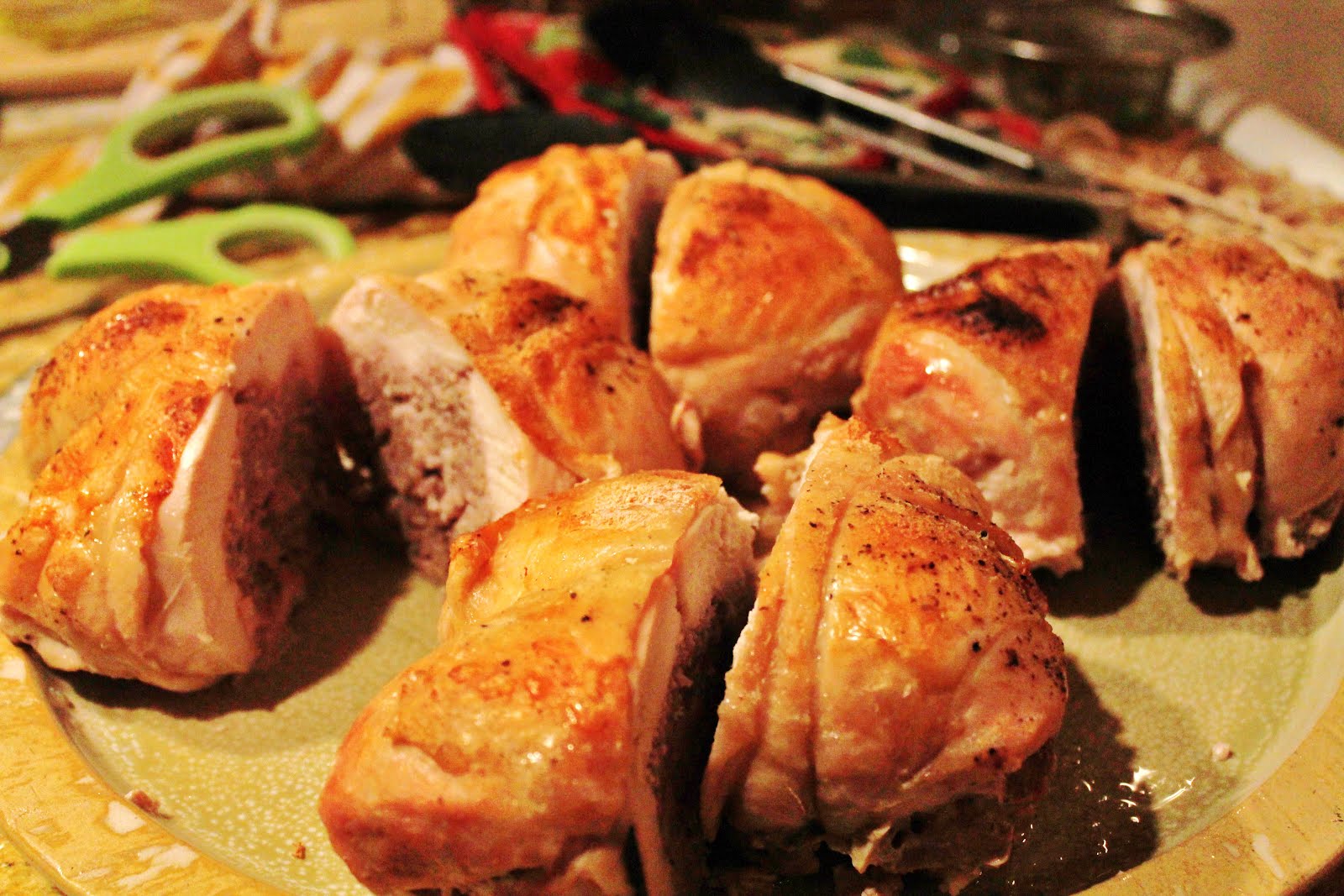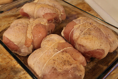 I had my butcher make up Polish chickens for me. I have no idea why they are called that. It is both chicken breasts stuffed with homemade sausage. One will be enough for two people. This is the before...
