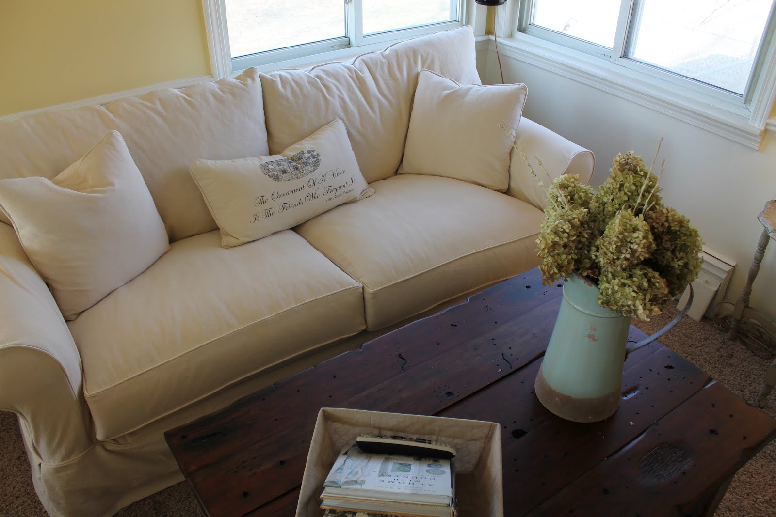 Other than a lot of reading {I'm also reading the book on my sidebar and it's throwing me into fits of crying}, I have been plugging along, waiting for the sun to come out. I'm happy to say that my new furniture arrives on the 7th and I am still trying to get the family room totally empty. There is a big bag of things to bring to the lake, and lots to donate. I find it amazing what I can pack into a room!