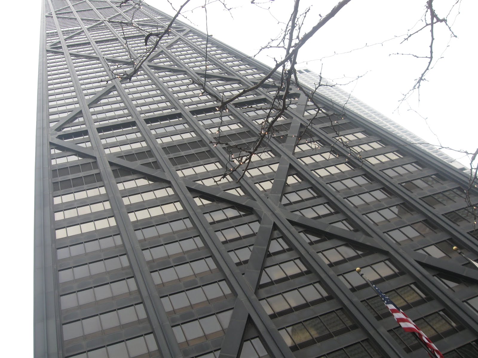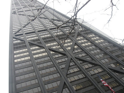 This is the John Hancock Building, all 98 floors. We sometimes stop and have a drink on the top floor which has a view that stretches out forever, but it wasn't a clear day and we would be sitting in clouds.