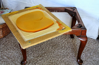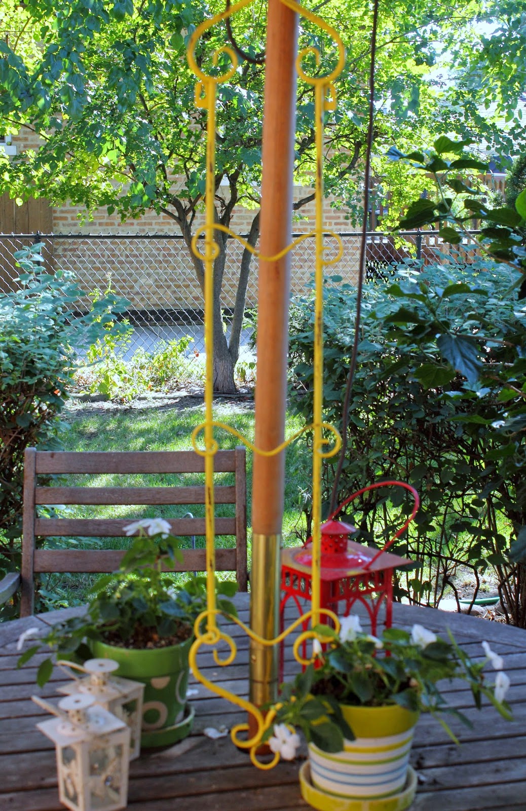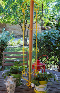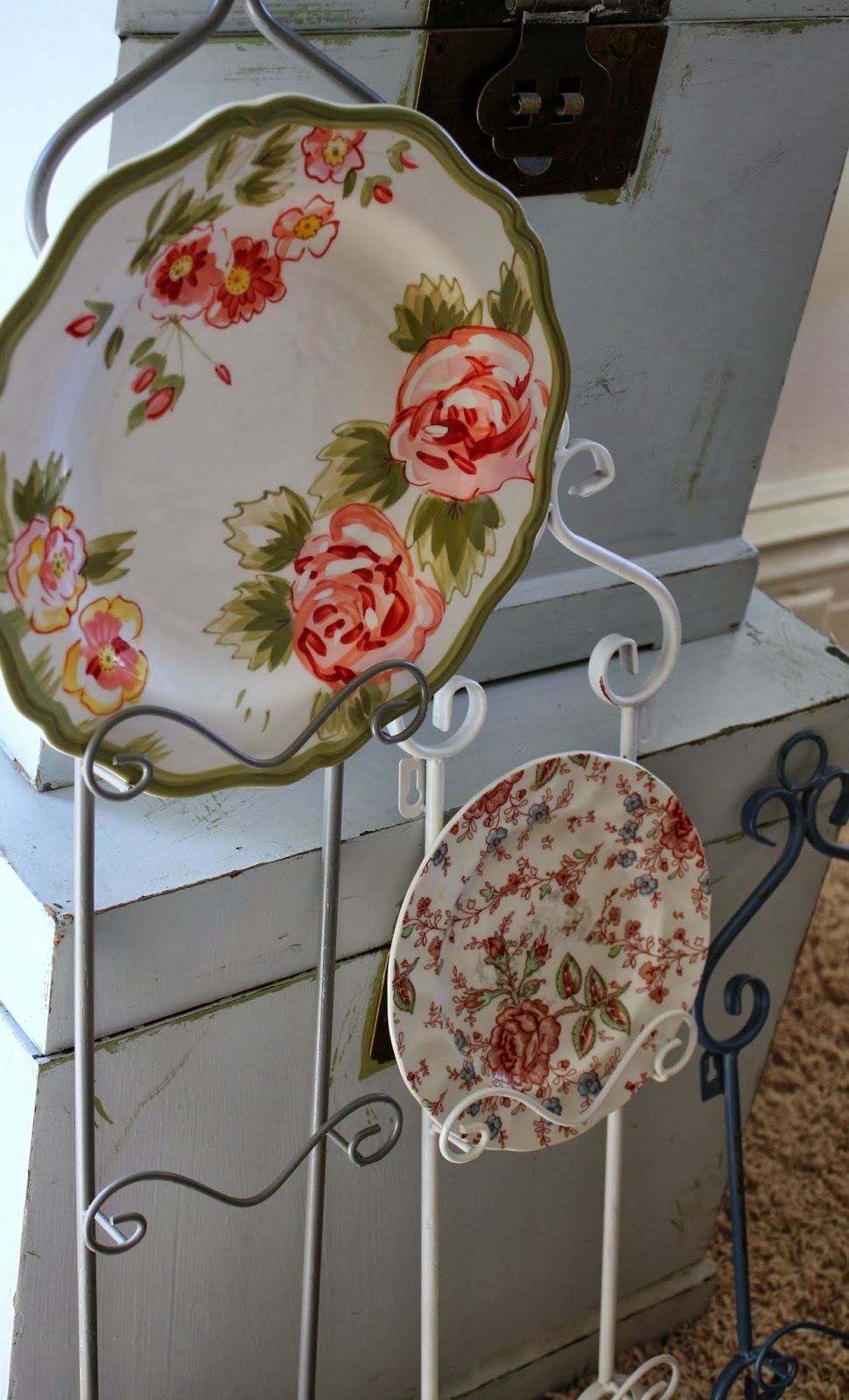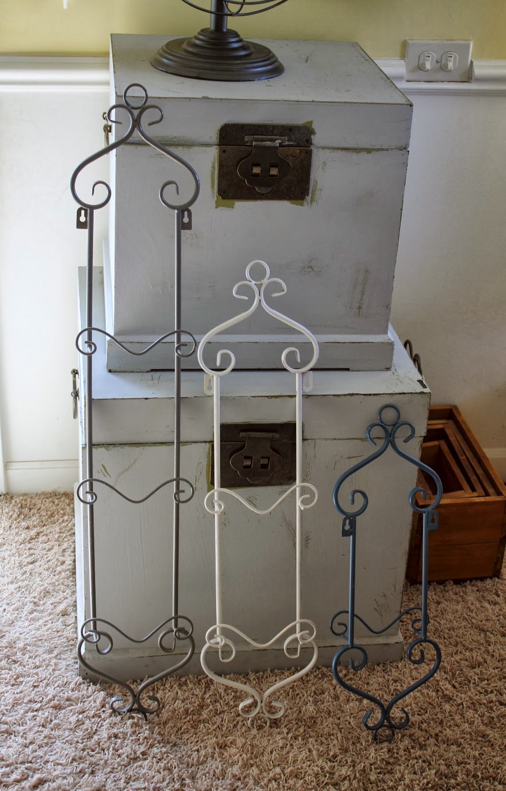 Okay, I had these three plate rack thingies that I ordered from One Kings Lane months ago. My daughter asked me why on earth I would order something that went with nothing in my home. I was asking that question myself when they arrived in brilliant yellow, red and blue. That's the yellow one above. Just about the only time I use primary colors in my home is at Christmas, those glorious reds and greens. I know I simply fell in love with the design and shape and I never...NEVER thought to spray paint them, my mind just never went in that direction until recently. And I know this is hard to believe, but I hadn't even taken them out of the box because I was so dejected that I had ordered them in the first place. So, out to the patio we went yesterday.