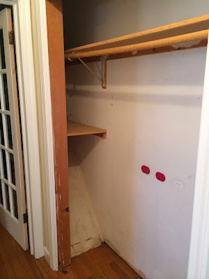 Now, I have a question. I was going to have the doors put back on, but of all people, my son, Jeff, suggested that I leave the doors off and go for a "mudroom" closet sort of look. I was really surprised. I thought that was something that I would have come up with and of course, been vetoed out. I'd love for you to weigh in.