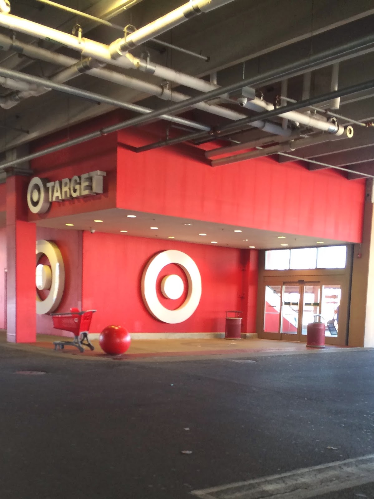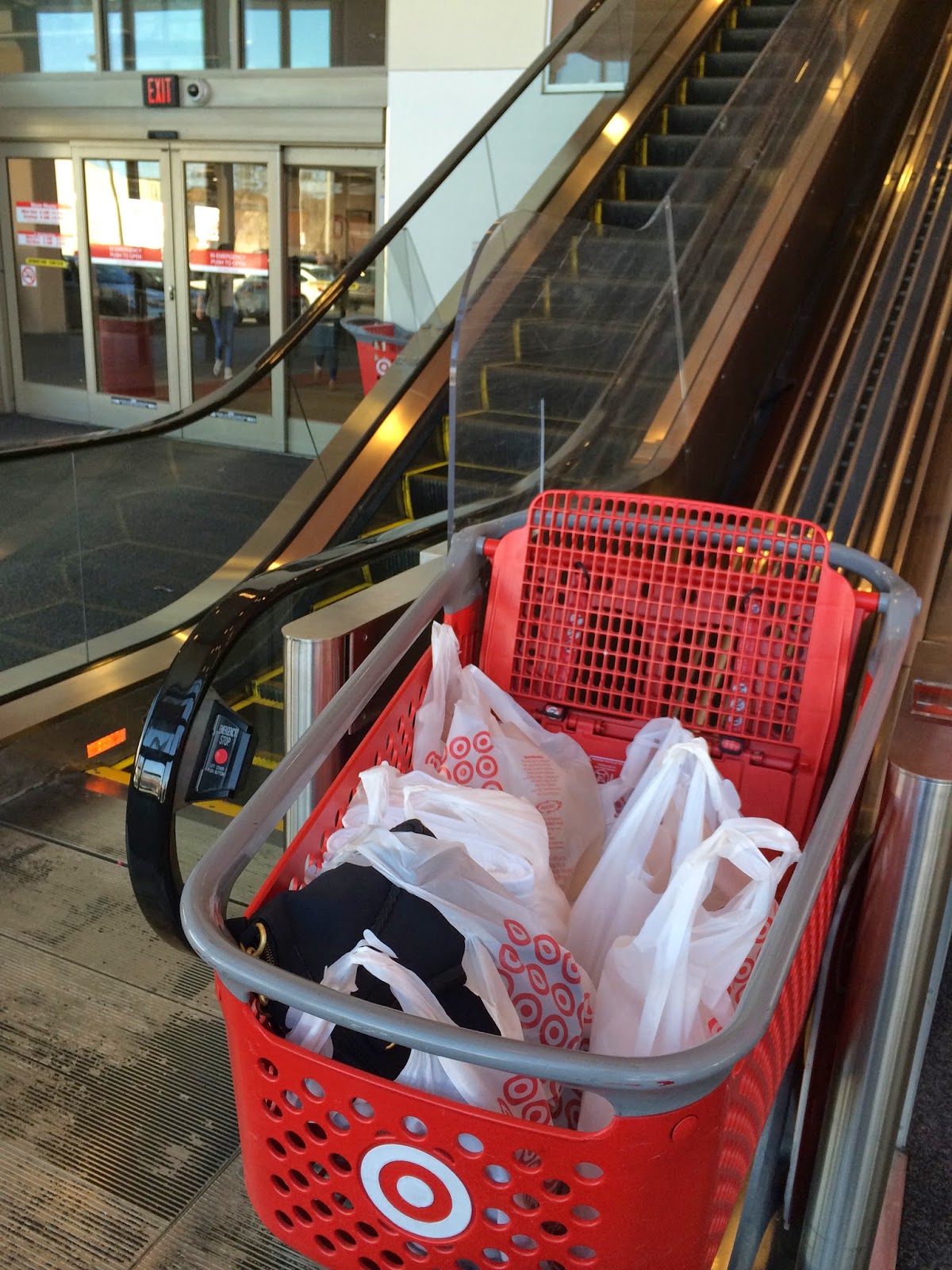Have I ever shown you how different our Target is. You know, in the city, everything is built up up up. Space is a commodity. So is parking so we have underground parking and you take an escalator up to the store. Now this may make you wonder, well, how do you bring your cart and purchases back down?