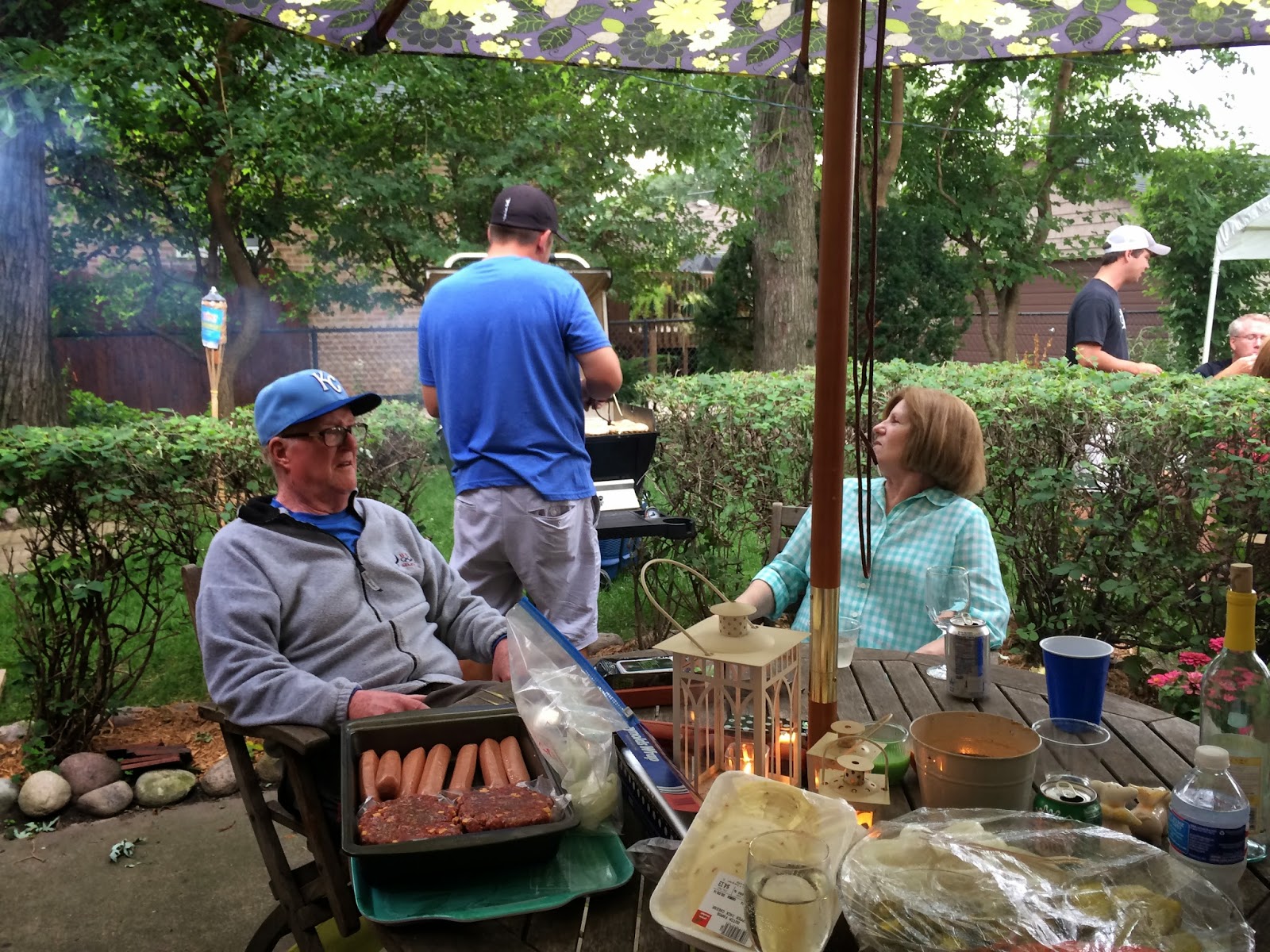 You might remember that we were going to have a BBQ on Saturday and yes, we did. It was a lot of fun but I am sorry to say I only have a handful of pictures. I was going to try to get pics when everything was set up but we were actually doing that even as the first couple of people came. If I learned anything from this particular party, if someone offers to help, don't try to act like you're Mr. Nice Guy and get all "Aw, shucks" over it. Be firm. Say exactly when and how you want that help. I was offered a tent, tables and chairs as well as some setting up help. I was also offered some help in the kitchen. Most of it happened but I think it turned into more of a disaster in the making and no one was very happy. I'm all for delegating, but not if it involves more than making a simple dessert to bring or loaning some extra folding chairs.