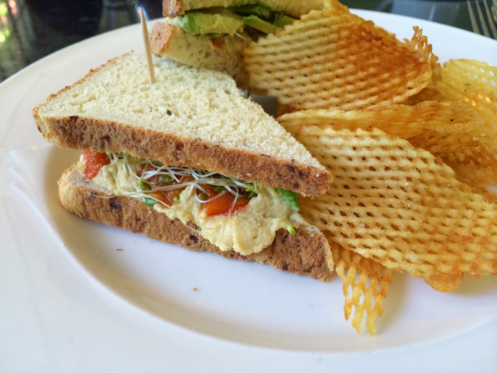 Good Morning! That blue sky is amazing, looks like a gorgeous place in the fall. I was surprised they had snow already; is Asheville in the mountains? (Kind of reminds me of Denver/snow in the morning, gone by the next day). That sandwich looks delightful, and so do the chips. Mmmmm....do you make your own hummus at home?