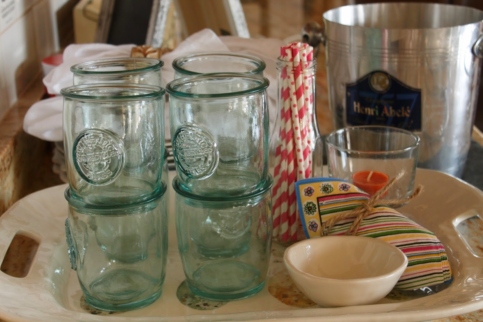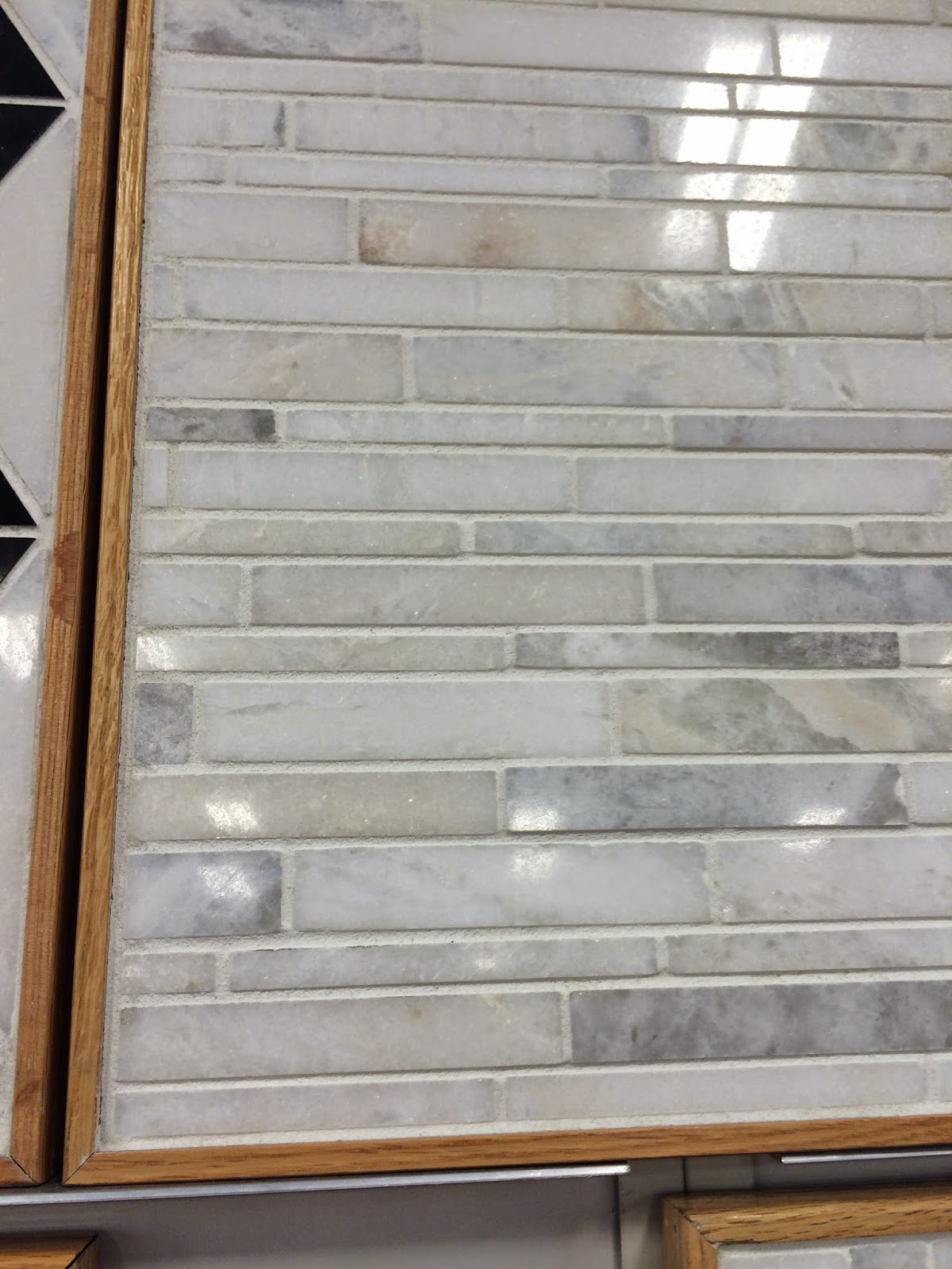 We spent some time last week looking at tile for the upstairs bath and powder room downstairs. I'm looking for beachy colors. It's hard to tell from this pic but it has some blue, grays, greens and beige. I love the irregularities of the tiles, too. The Husband and I don't agree a lot on what we like but we are getting better at listening, understanding and appreciating what each of us wants. And we know when to walk away away from each other, if you know what I mean. :)