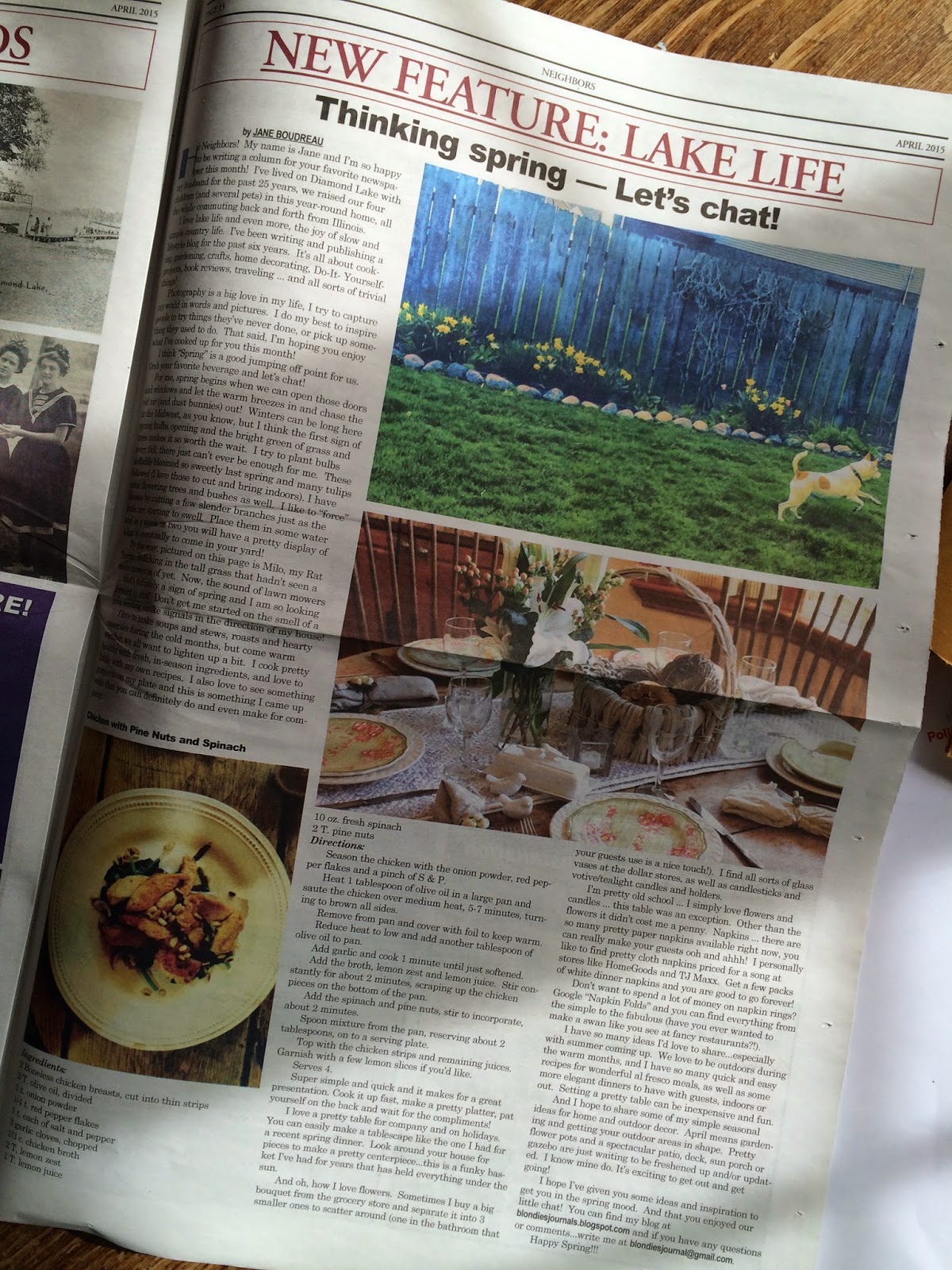 Hello everyone! I hope you are having a good start to the week. I'm just miserable over this weather and that's just not me. Not that I never get miserable but I take the weather with a grain of salt-there's very little you can do about it. But we were teased all last week. Friday was exceptionally warm, almost 80 degrees. I cleaned up the patio and The Husband and I brought out the patio furniture and umbrella. I was going to cook salmon on the grill and then it just clouded up and now our forecast has predicted rain, gloom and doom for the next two weeks. So I awoke to gray skies and wind this morning. Even the dogs sulked.