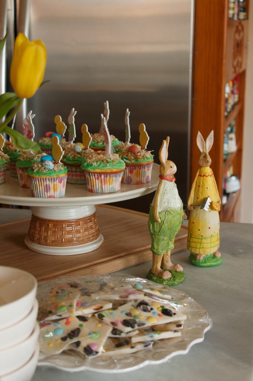 We always try to save room for the cheesecake and it never happens. And yes, we should get a piece to bring home but we never do. I had pity on my man and made this yesterday. It's from Susan Branch's first cookbook (sorry no link), and I think it's great. I know you saw my Easter cheesecake mess but I swear, The Husband cut this last night with a machete or something similar and it ended up looking like this. Still, it was heavenly. Do you know you can get graham cracker crumbs as opposed to the crackers? No pounding and pulverizing...just add your melted butter, no waste.