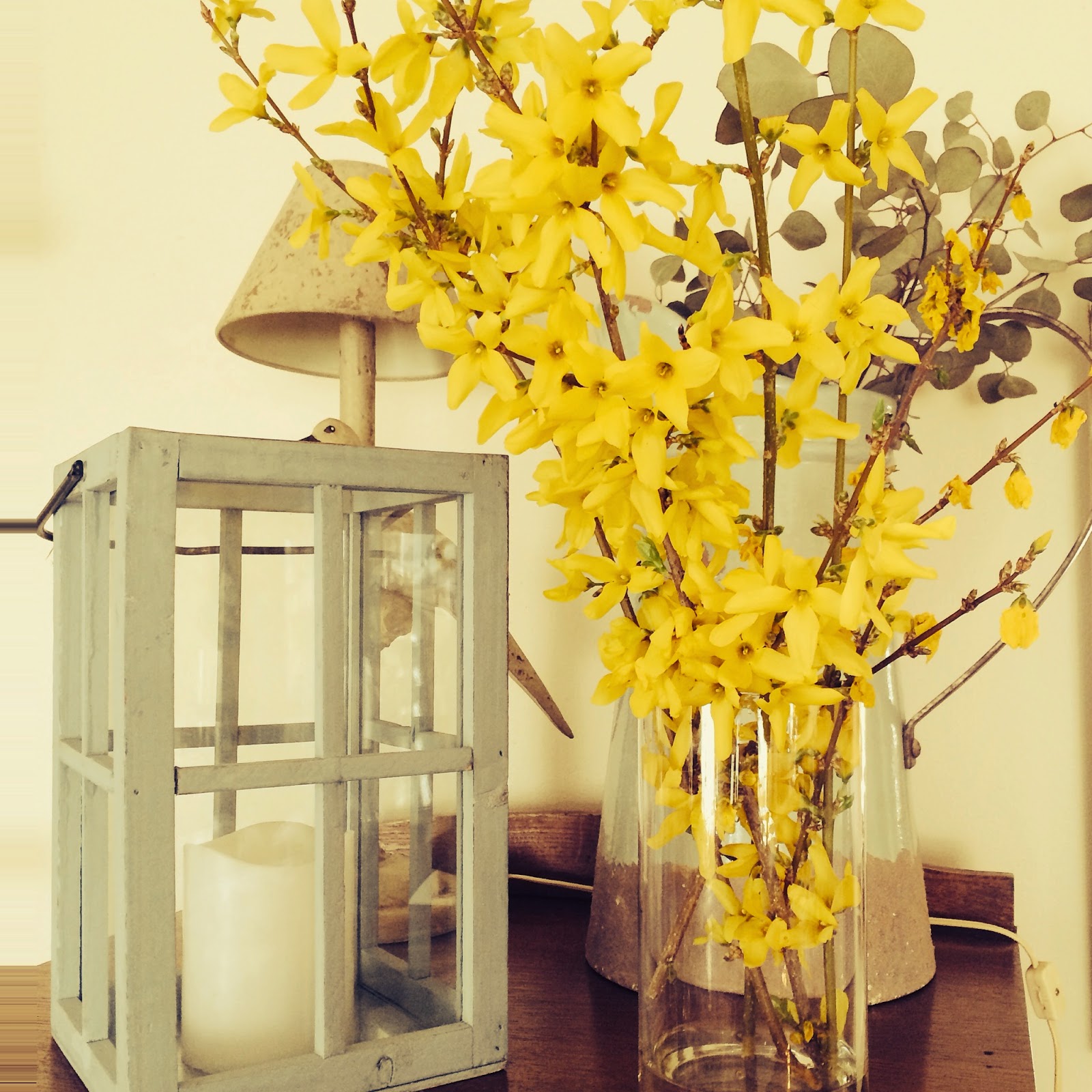 These are the forsythia I cut and brought in last week. I had daffodils as well. I'm so looking forward to my tulips, I have such a great variety and they last so much longer.
