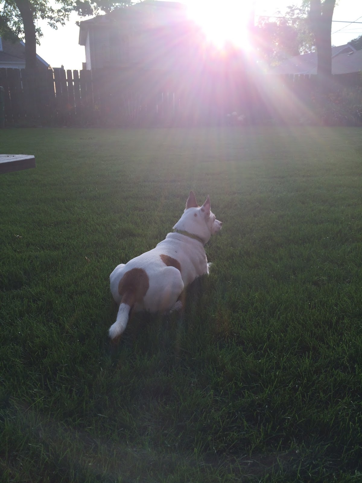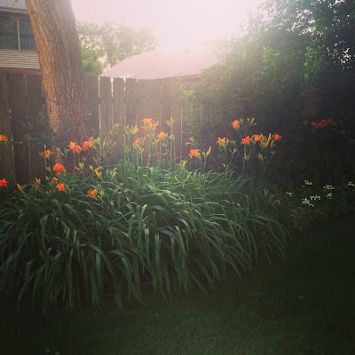 I continue to spend a lot of time outside but it's mostly just relaxing or putting the sprinkle on my garden bed under eaves. I like watching it go back and forth and the steam rising from the hot ground. Yes, it hit the 90's here this week. I simply need that restful time and clean air and the dogs do, too...although in this weather I watch them closely and get them in when they start to pant. Have I talked about this already? My mind is gone. Seriously.