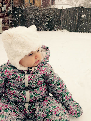 This brings a smile to my face, a cute little picture of Elsie having her first experience in the snow. Can't you just eat her up? We haven't had a lot of snow here and not many really cold days but for the deep freeze last week so it's great to see this little one have some fun. Can you believe her 1st birthday is just a couple of weeks away? Time really goes by so fast.