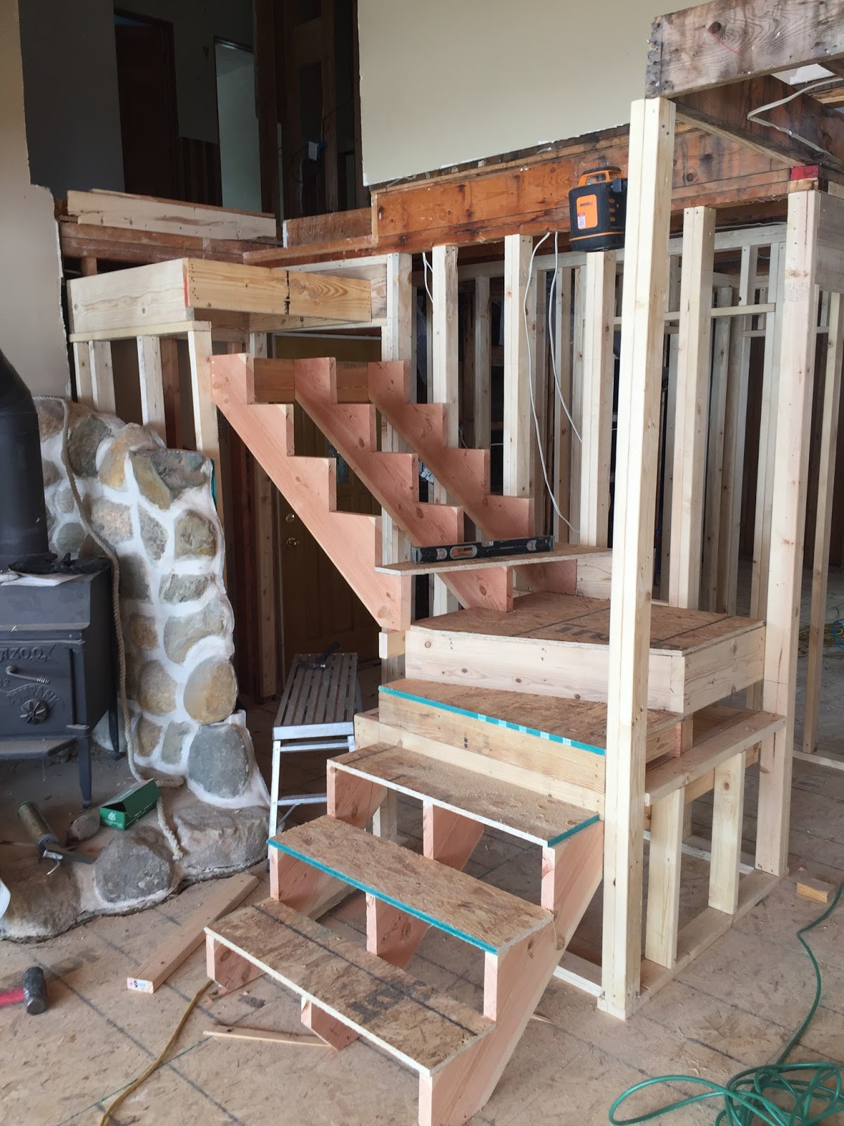 I haven't made much mention of the lakehouse. We are in about our 8th week of work there, most of it was demolition. The sub floor is now there when previously we looked directly into the crawlspace and The Husband couldn't even step in to look around on his last visit. So now it's there and work has begun on the staircase. It appears we are working from the bottom up. We've made a lot of changes, the stairs will be stained dark and the risers will be white. And we chose black iron spindles. I've picked out my kitchen cabinets, appliances and light fixtures. It really has been fun, at least when The Husband and I are in agreement. ^^