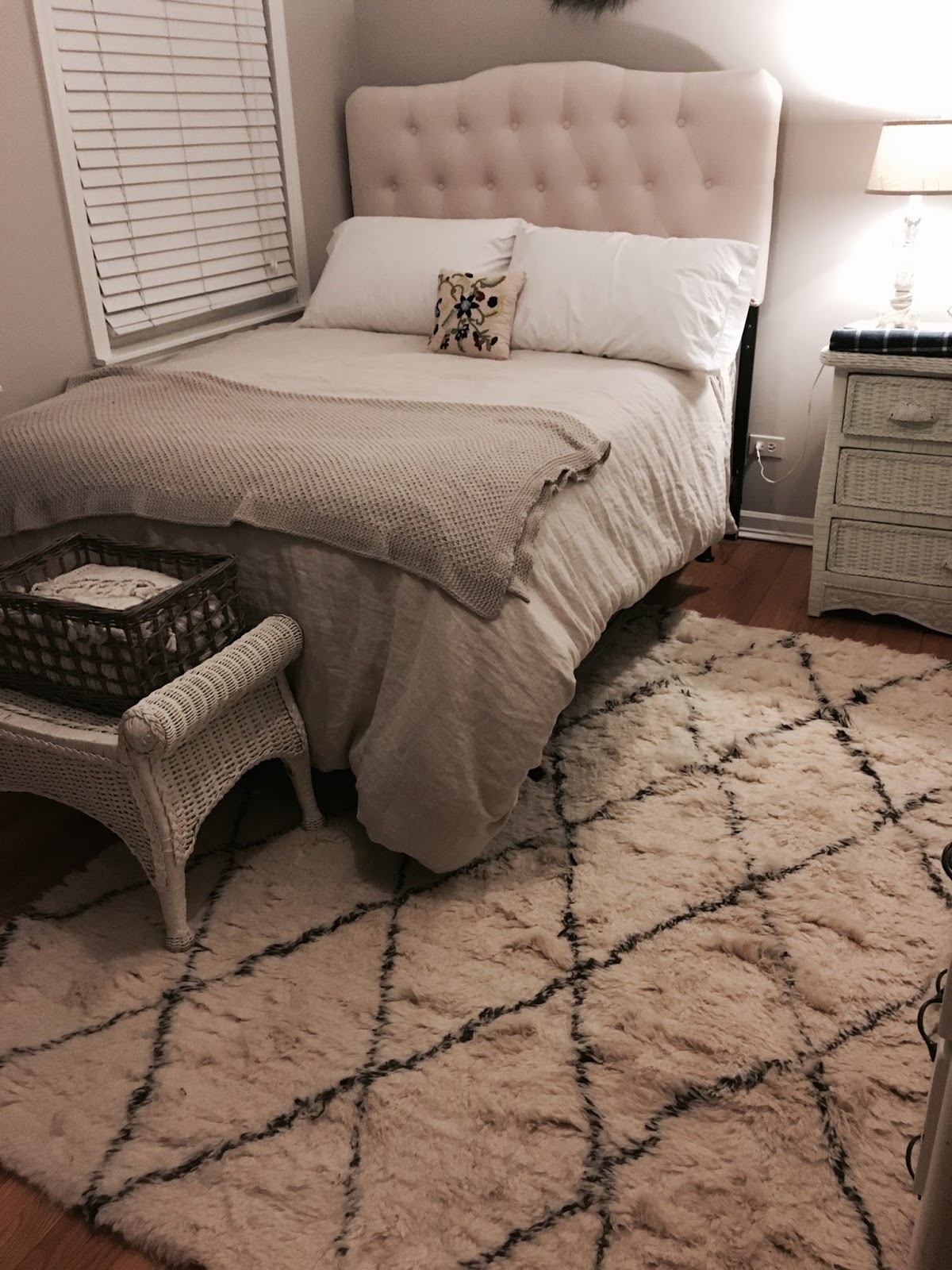 I've been wanting a new area rug for our bedroom for a long time and I've really been loving the Moroccan style shags I've seen here and there. When I started to price them I nearly passed out. I think the high prices might be because they are hand tufted. I found this on Rugs USA but it was way beyond my budget. I signed up for emails then lo and behold, this baby went on sale. Please know I'm not being compensated at all. It is just a great company with exceptional sales and the rug arrived quickly and was wrapped perfectly.