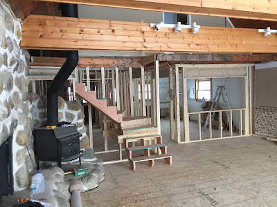 This is a partial view of the Great room with the kitchen on the right. It feels so odd to look at our home this way. I'm very happy with the progress and barring any complications this might be completed by April. Then it's the arduous task of moving back in. I have no idea how quickly we can do that.