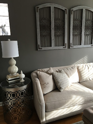 The light changes and the color takes on putty shade. It looks beautiful with her furniture and pieces. She is not tied into any trend. She goes with what she loves and knows what works. I have gotten so much advice from her and I truly believe my home, with her help, is a reflection of what I love and can't be defined by any 'style'. I truly enjoy decorating books and the many shows on TV that show how spaces can be transformed. It's all food for thought. I have a nice collection of decorating books and I pick up any one of them from time to time and get inspired by ideas I hadn't thought of before. There is no 'one way' to do anything and fresh ideas are in abundance if you really keep your eyes open. :-D