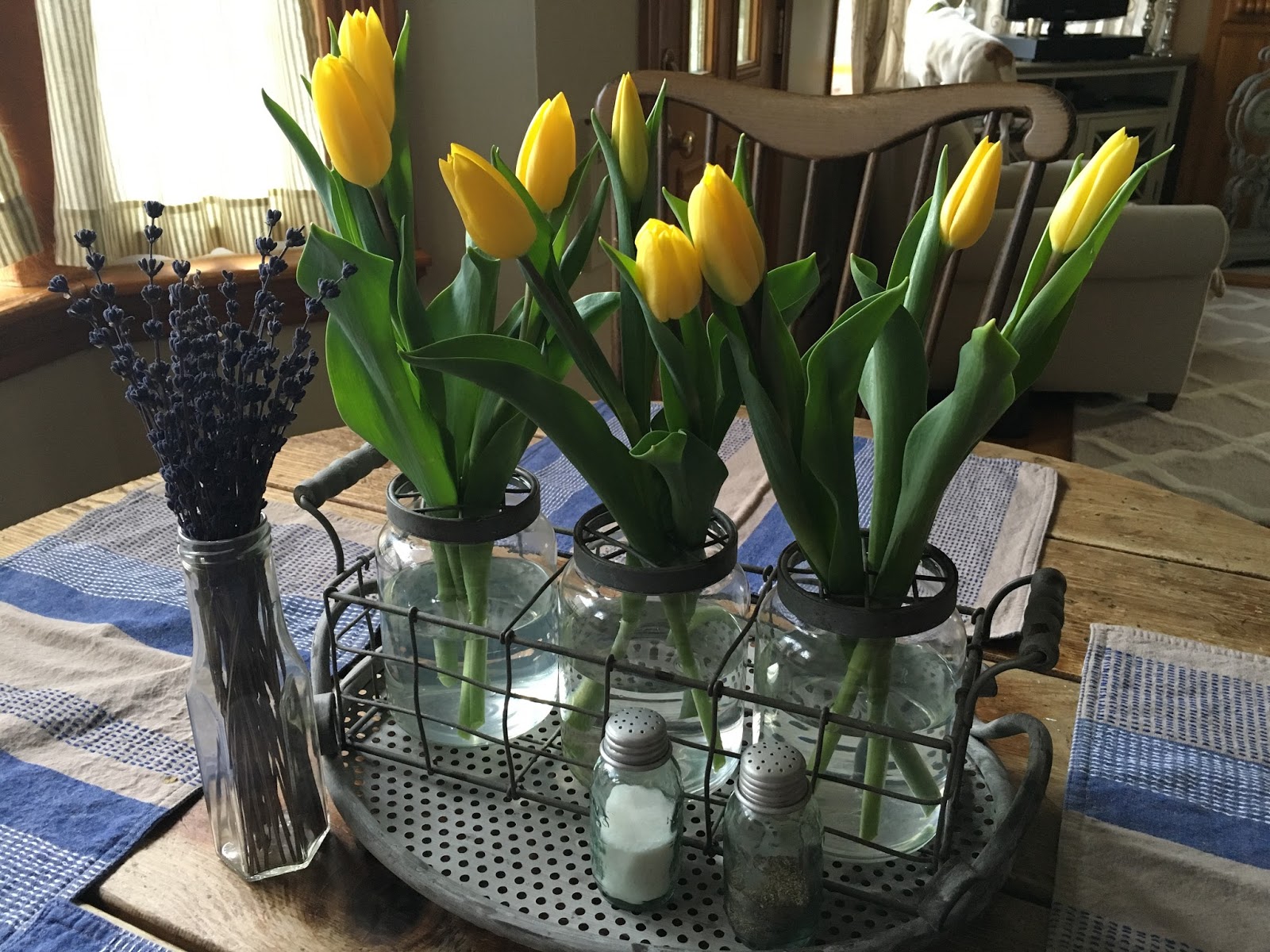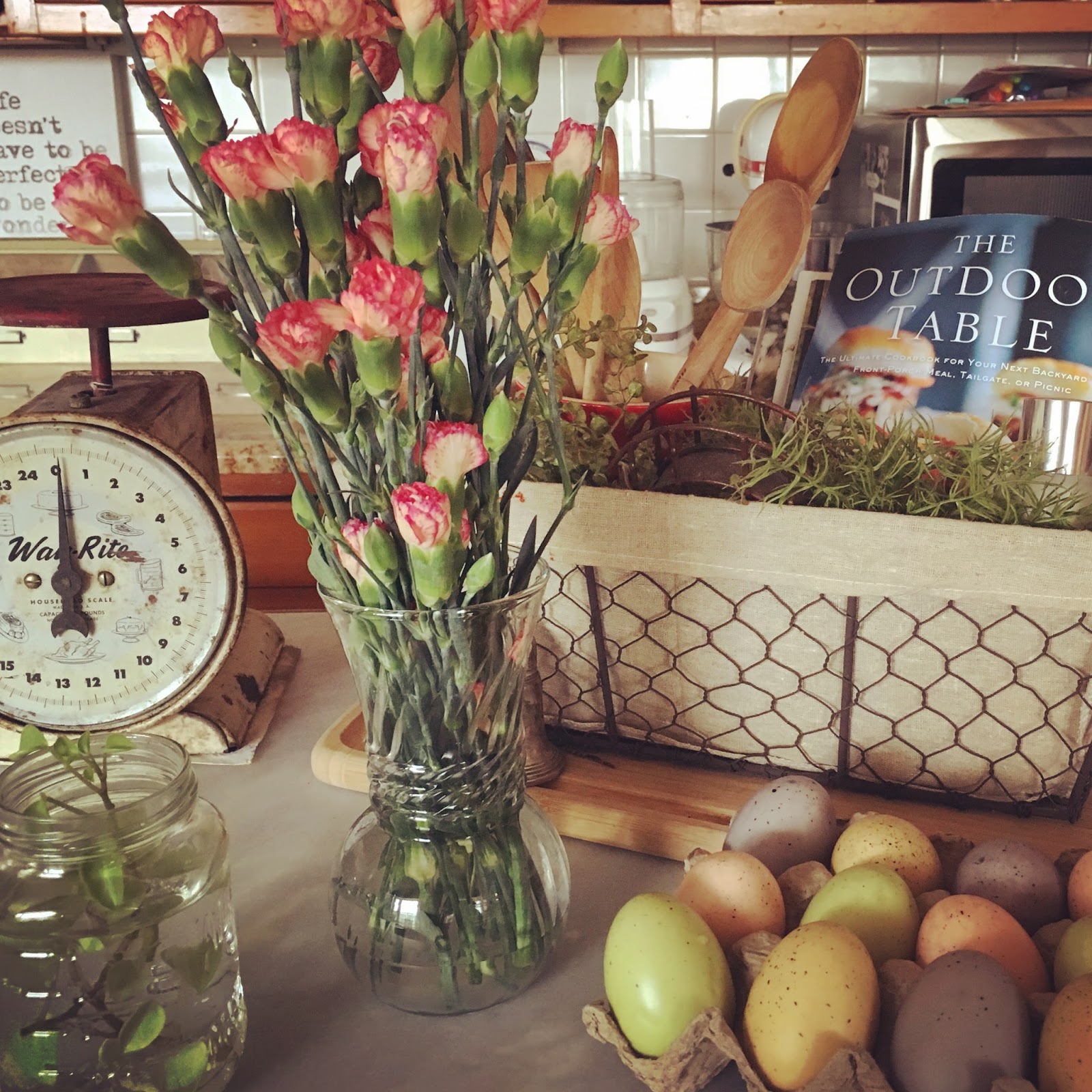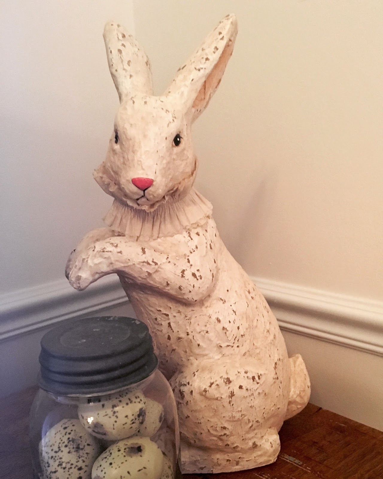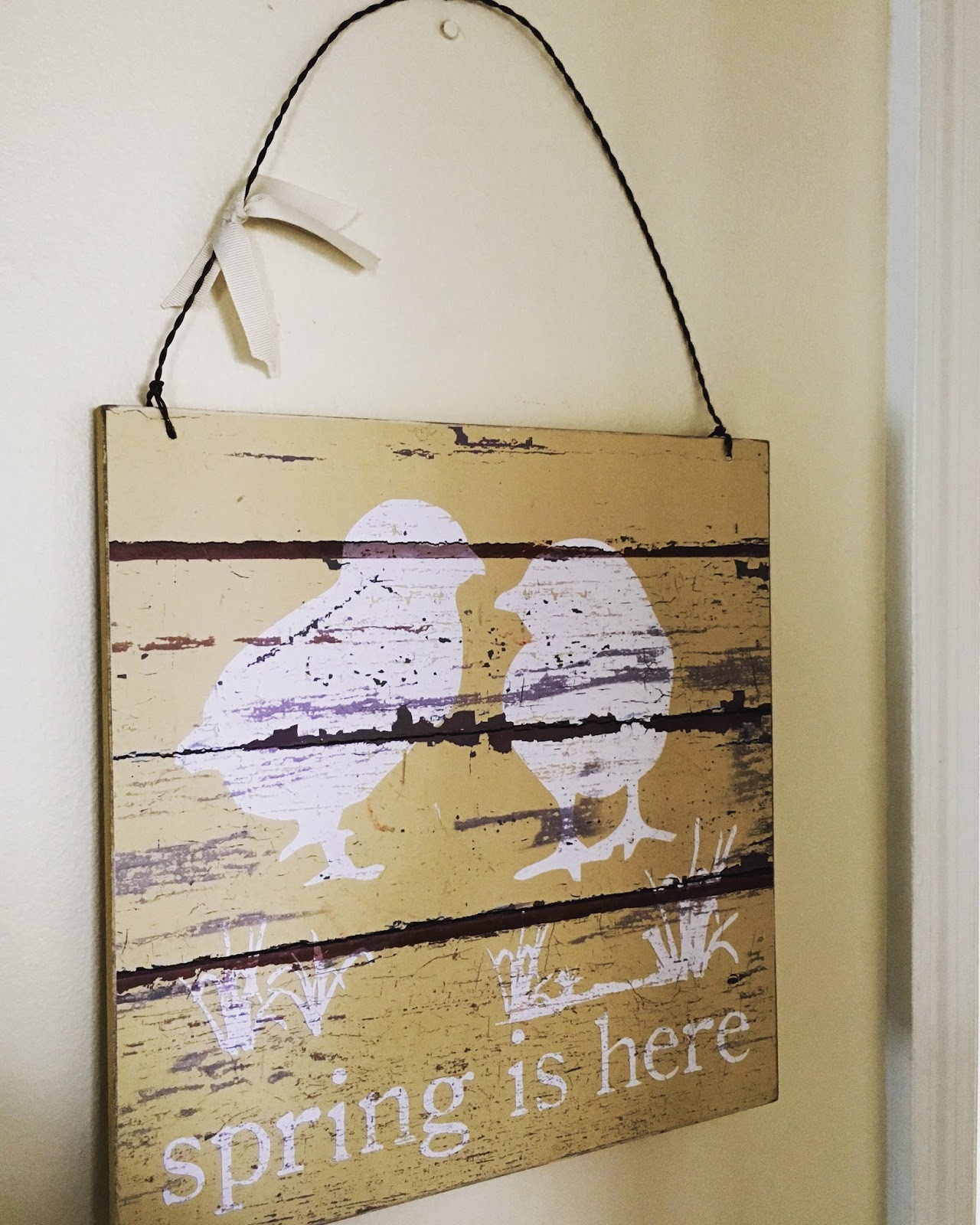 I didn't bring out all of my Easter/spring decor. I have limited space. I spread out what I had over the whole house including the bathrooms and guest/Abby's room. I didn't want to overload anything. And I've mentioned how creepy all of those staring eyes can be. Ha!