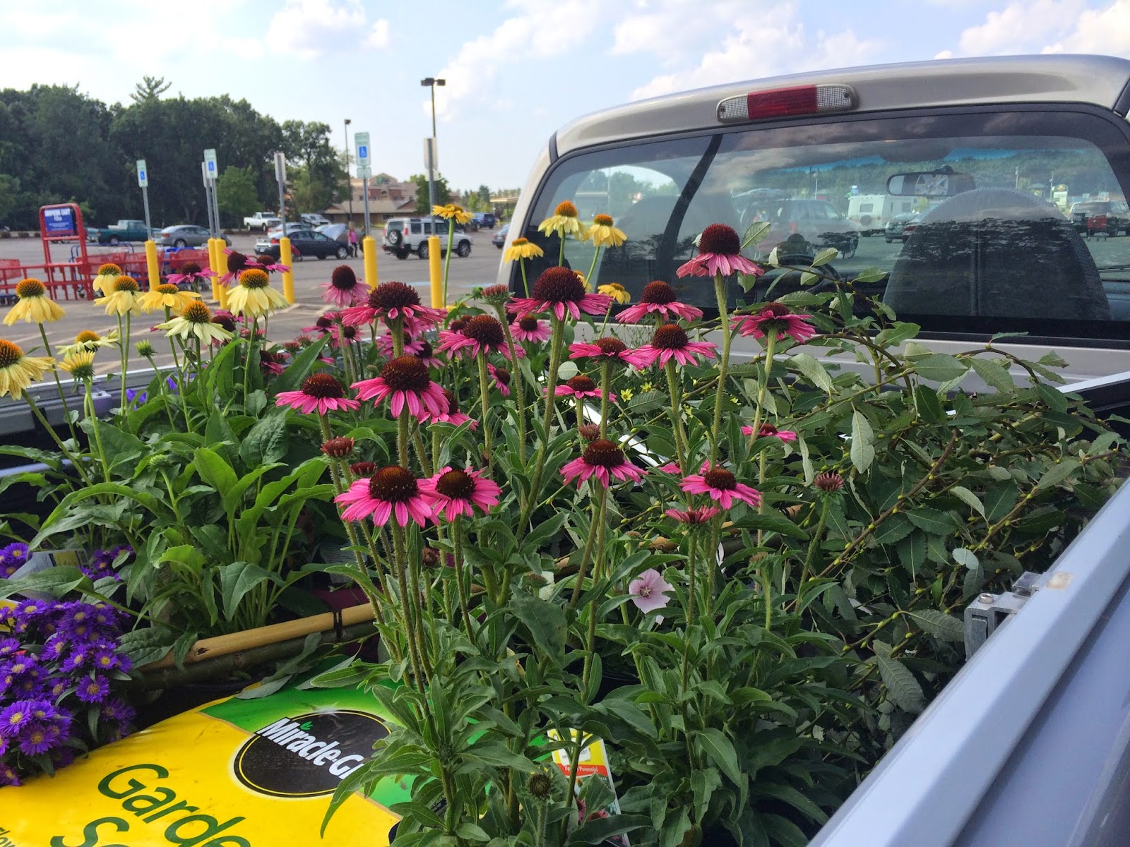 As we walked around I mentally put together my pots and selected plants. Emily seemed to be in a daze. That's not like her, she always has a plan. Always. I asked her what was wrong. "I'm overwhelmed, mom. I just can't think." I believe her. She's in over her head with work and then meeting clients in her free time. Trying to continue with the yard work and designing the baby's room. I told her to go get a cart of her own and I would take care of Elsie. We poked around inside and out of the shop and after about fifteen minutes I ran into Emily and her overflowing cart. It didn't take long for her to get her mojo back!