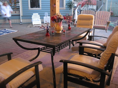 One day Future Interior Designer Daughter (FIDD) came to me and said, "Mom, I saw the most cool house the other day. It was the same color as ours and it had chocolate brown and blue trim." So I thought, you know, brown and blue look marvelous together. I mean, look at my blog!! Well, we knew we had to do it without The Husband knowing. Generally speaking, we had to "sneak around". So the plan was hatched. I'd whisk The Husband up to the lake while Emily did the deed. Well actually, we were going to the lake anyway, so there was no real whisking involved, but The Husband was out of the way and Emily set to work!