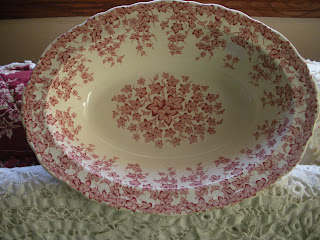 Hooray!!! Look at this! This is my first piece of transferware! I am so psyched!! I don't even have a china cabinet!! Hee Hee! I bought this last week from the shop I photographed in my last Pink Saturday post. (I didn't include it because it is more red than pink). I am not really a collector of anything. My brain is spread way too far out to want any more than one of anything. (Does that makes sense?) But this transferware is definitely something I could get in to! Isn't it pretty? Next...a china cabinet???
