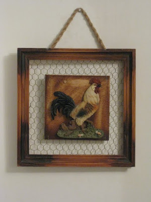 Oops!! And then I was unpacking boxes at the lake that held all my wall art that we put away while we had the renovations going on. I found this beautiful plaque that my sister gave me years back. I love the chicken wire!! It's real! I felt so bad that it didn't make it to the party, so here it is. Gosh, I feel like I am having my own wee little Rooster Party all over again. I am never joining one of these things again. ;-D