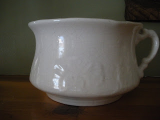 And this is what I was told is a very old chamber pot. Is that what I think it is?? If so, why is it so fancy? Why the delicate handle? Am I going to use it for anything other than a receptacle for flowers or the like? Nope!!! $10.00. Need I say more? By the way, it's big, the top is probably about 16 inches in diameter.