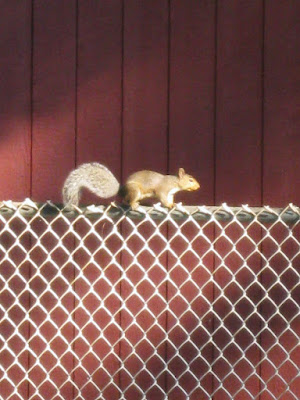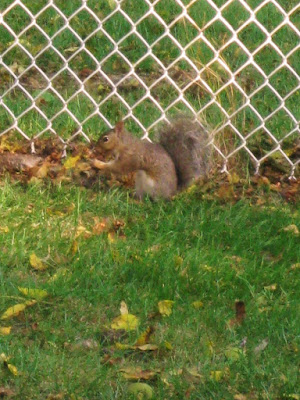 I apologize for the quality of my pictures. I just got a new camera (Whoo Hoo!) and I haven't quite figured out all the settings. But this is one of the thousands of squirrels running around my yard. It's that time of year for everyone, but for me, it's worse. My joy and my curse is that we have Black Walnut trees!