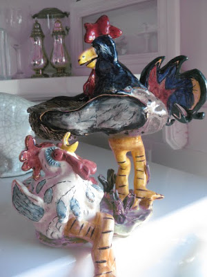 Today is the big day to announce the winner of the Ugly Rooster Giveaway. I will be so glad when this whole thing is over with and those rooster's are out of my house. I wrapped them up carefully and brought them home from the lake. Gee, I hope nothing broke...Who in the world would want these things?? Probably someone like me, who stood in the little dime store in South Haven, Michigan, ogling the price of said rooster's, thinking, "Wow! This is only $3.50!! They are practically giving this away!"