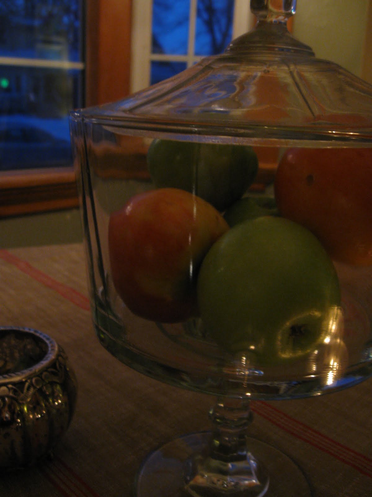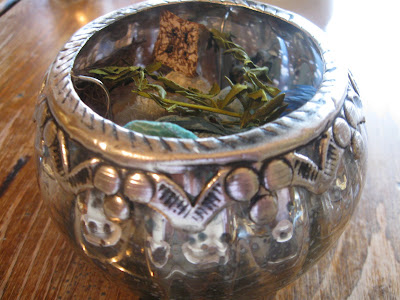 I love my mercury glass and kept most of it out after packing some away from Christmas. I filled this little piece with potpourri from Smith & Hawkin.