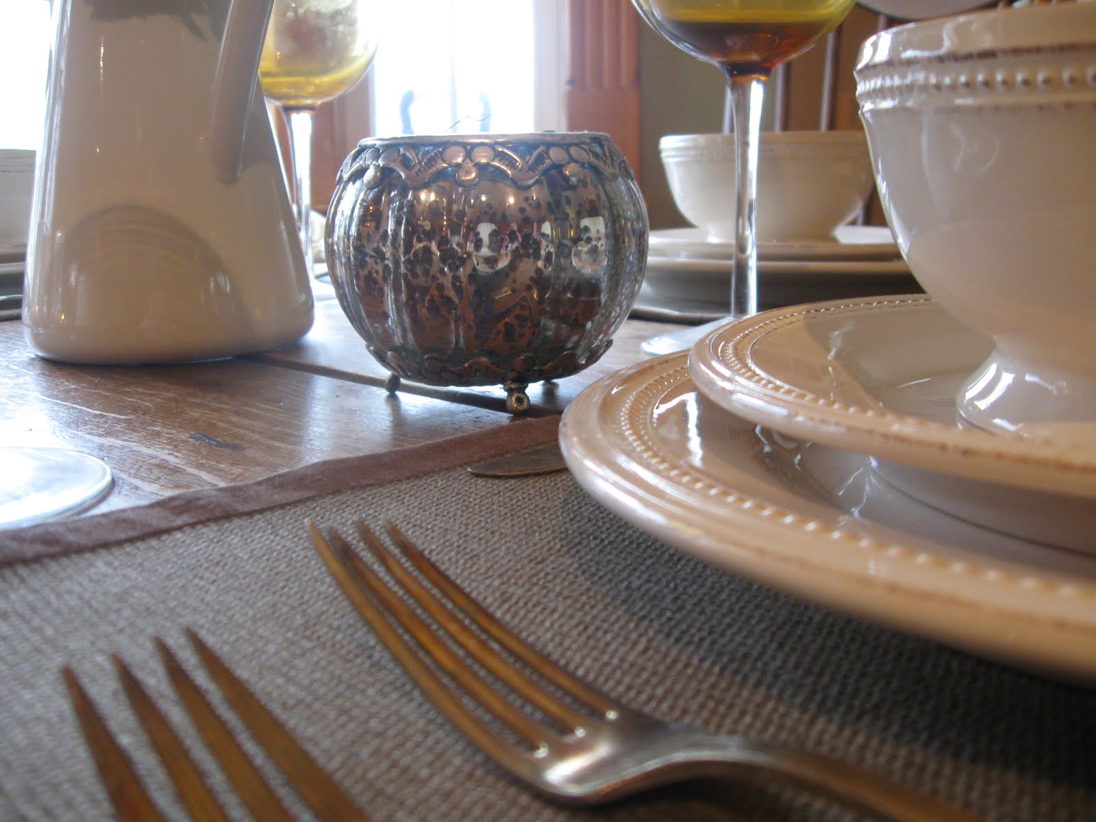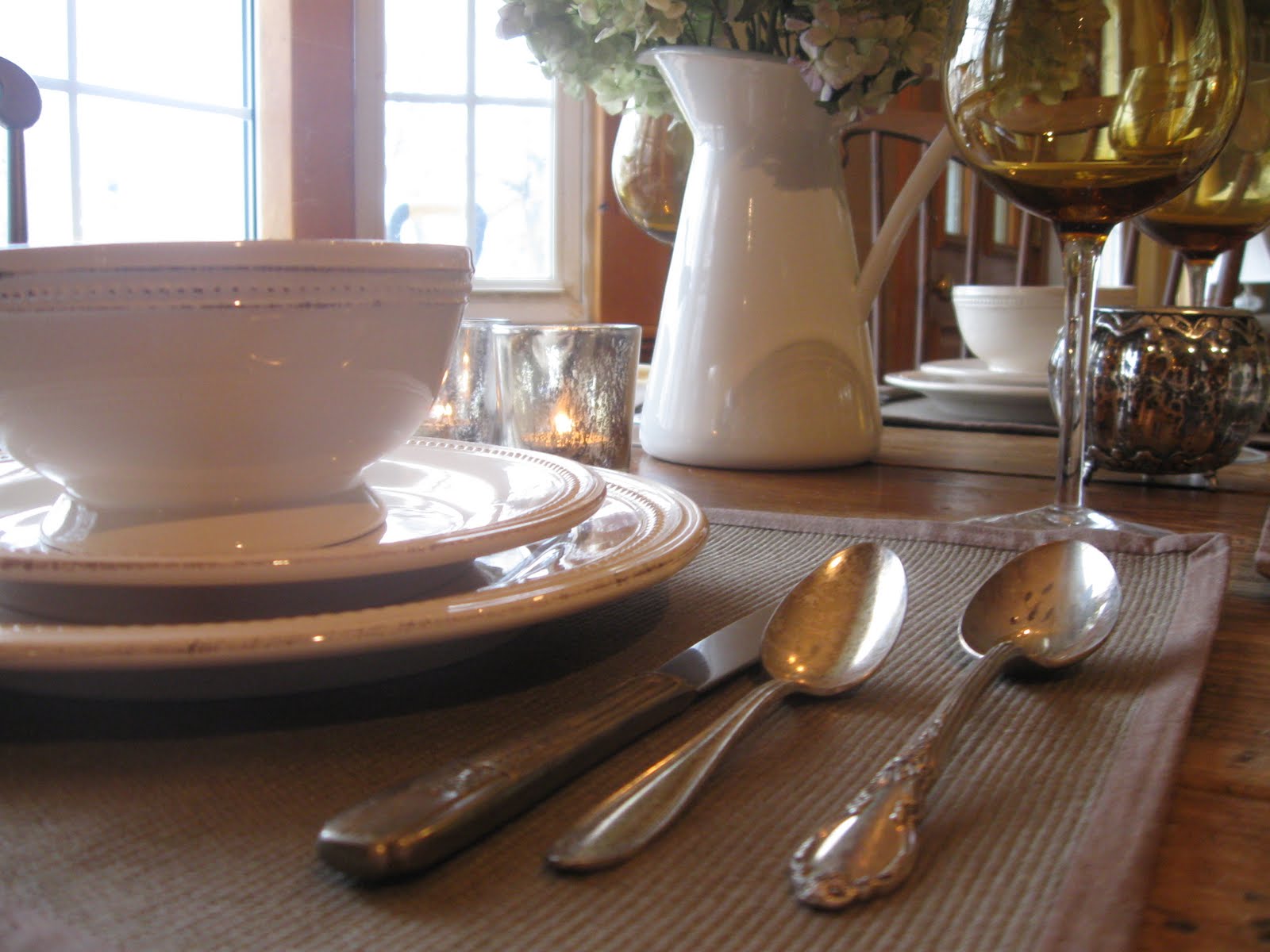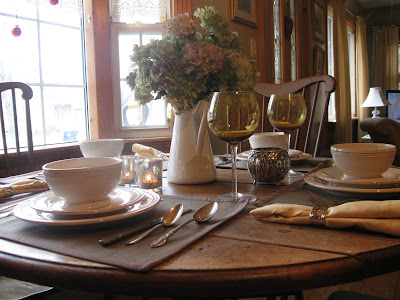 I haven't done a tablescape in the longest time, so with the weather being rather gloomy today and no sign of spring, I got down to it. I gave you a little peek of the dishes I got from Ballard's awhile ago but never actually set a table for you with them. We use these as everyday dishes. I love the soft brown glaze around the edges.