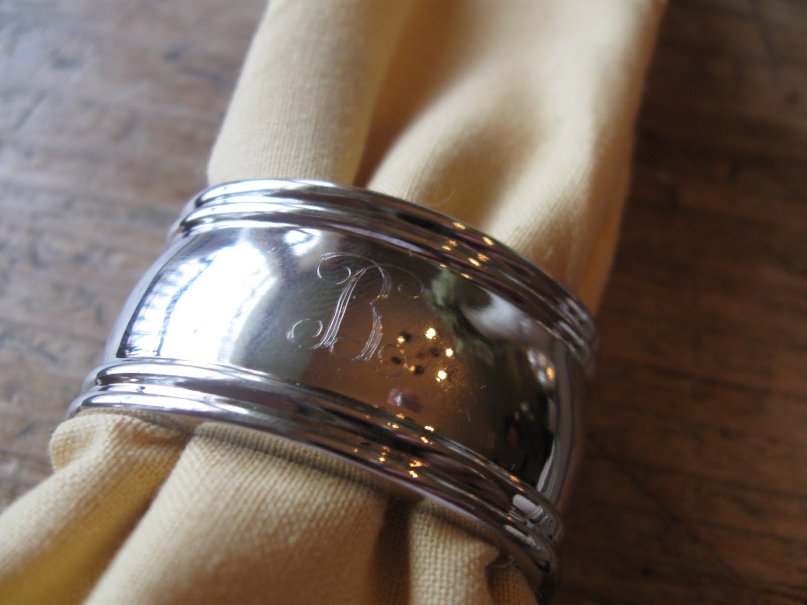 The napkins and place mats are the Food Network brand that you can buy at Kohl's. I love their kitchen linens and stock up whenever they have a sale. The monogrammed silver napkin rings are from Grandin Road, and no, the B is not for Blondie.