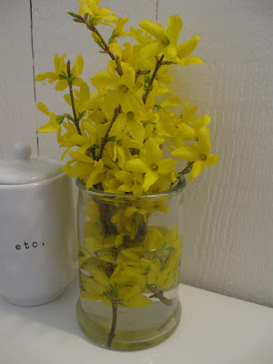 My red twig dogwood is blooming and I cut some branches to bring inside. They almost look like forsythia. I planted this guy when we first moved in and it is a monster now. My daffodils and tulips are just getting ready to open...finally.