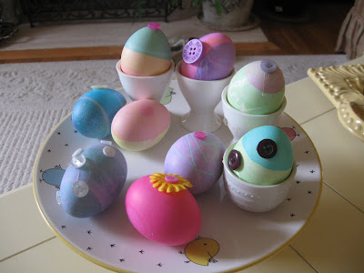 She spent a long time on this egg, using thread and flowers and buttons. I'm going to save it.
