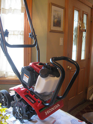 ...my rototiller. If it weren't so wet out, my garden tilling would be underway. But we have to wait several days until the ground dries. I never thought I could get so excited over a machine. And The Husband is excited that he has something to till the beach with. I'll refrain from showing you pictures of the progress of my seedlings, but they are growing like mad. Soon I can put them in bigger pots.