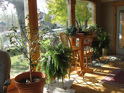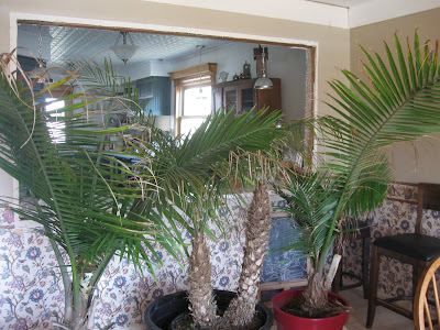 I took some pictures of all the plants that we had to bring in now that the temps are dropping so low at night. They really do well with all the sun we get through the windows. I lost one fern last year...they just need more water than the rest. The Husband's palms always seem to make it no worse for the wear.