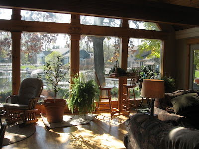 Needless to say, we didn't do much. Everything has been cleaned up and put away...we are actually ahead of the game. The Husband spent a lot of time watching college football and I spent my time lying on the couch reading and napping. Since the patio furniture is put away, I sat on the porch steps for awhile breathing in the crisp lake air. Somewhere, someone was burning leaves..it smelled like fall.